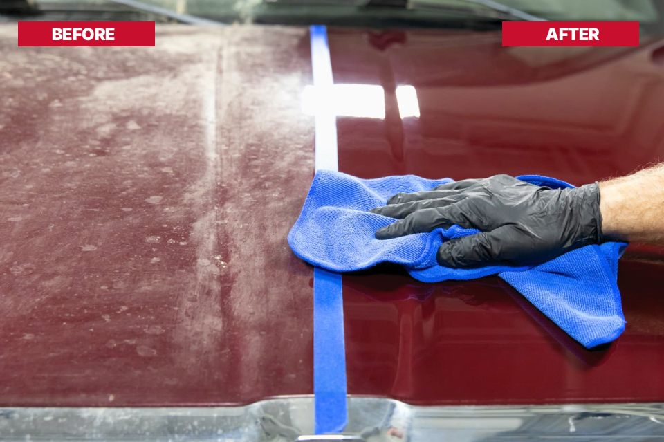 Machine polishing using rotary or dual-action tools to remove swirl marks, scratches, water spots, and oxidation. We document paint depth before and after every correction. Never apply a coating over uncorrected paint — it locks in the defects permanently.
